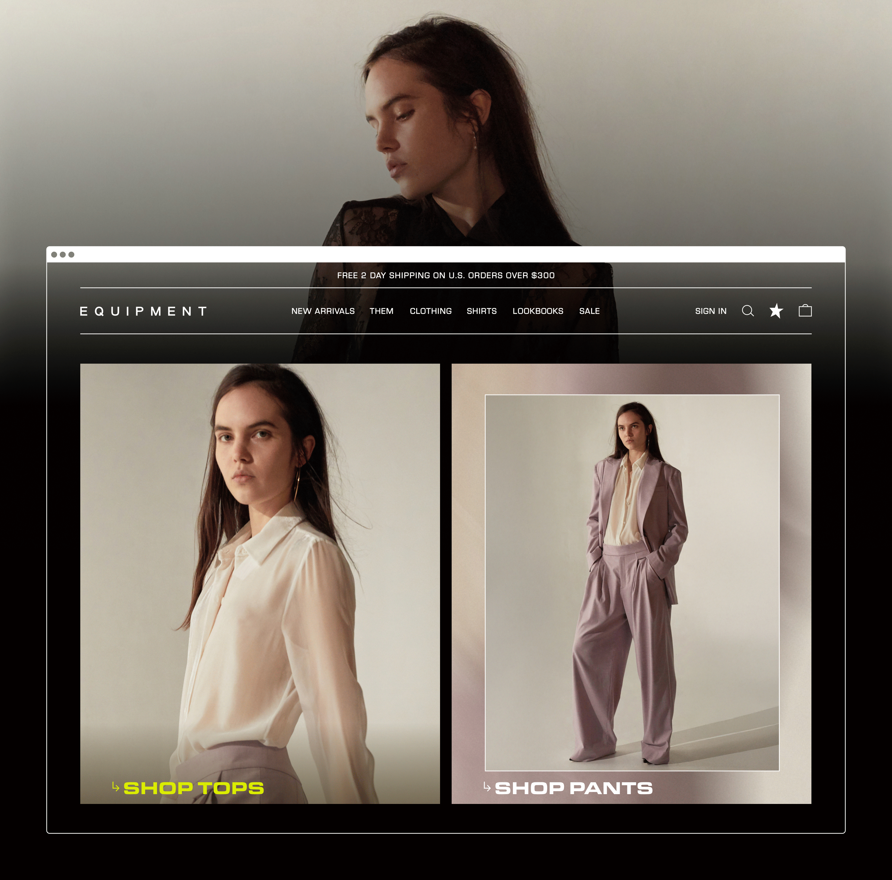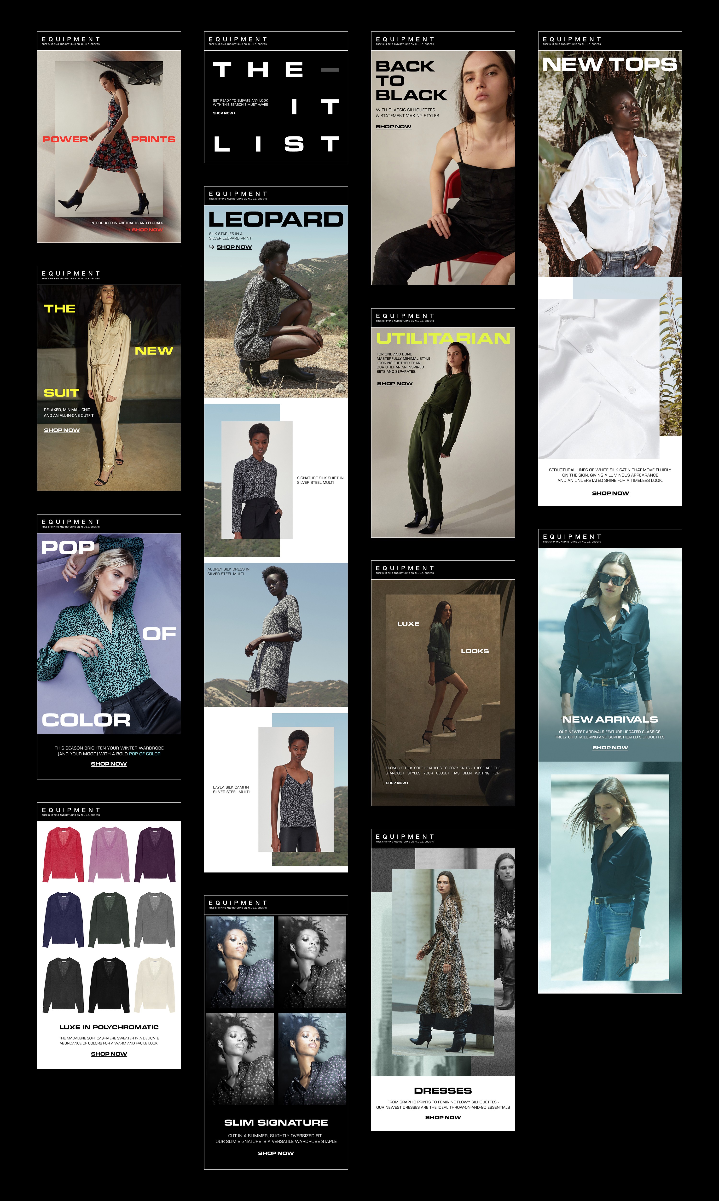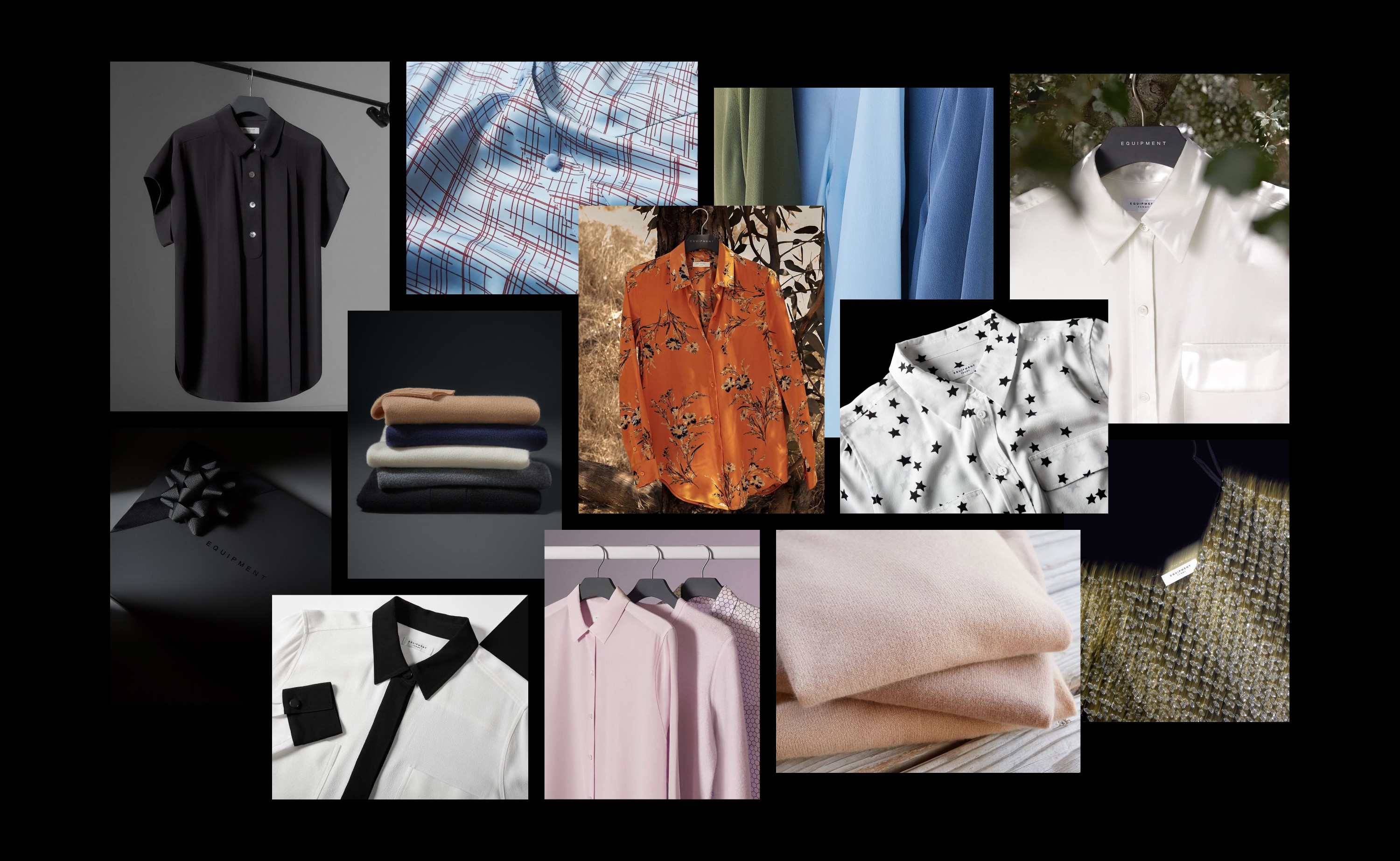 Equipment is a fashion brand primarily known for its silk shirts. As the lead designer for the brand, I worked on designing all of the marketing collateral. I also got the opportunity to art direct photoshoots. I’d pull lighting and styling references, and I’d go down to the studio and collaborate with the photographer to shoot content using the resources we had. Here's a selection of work.
